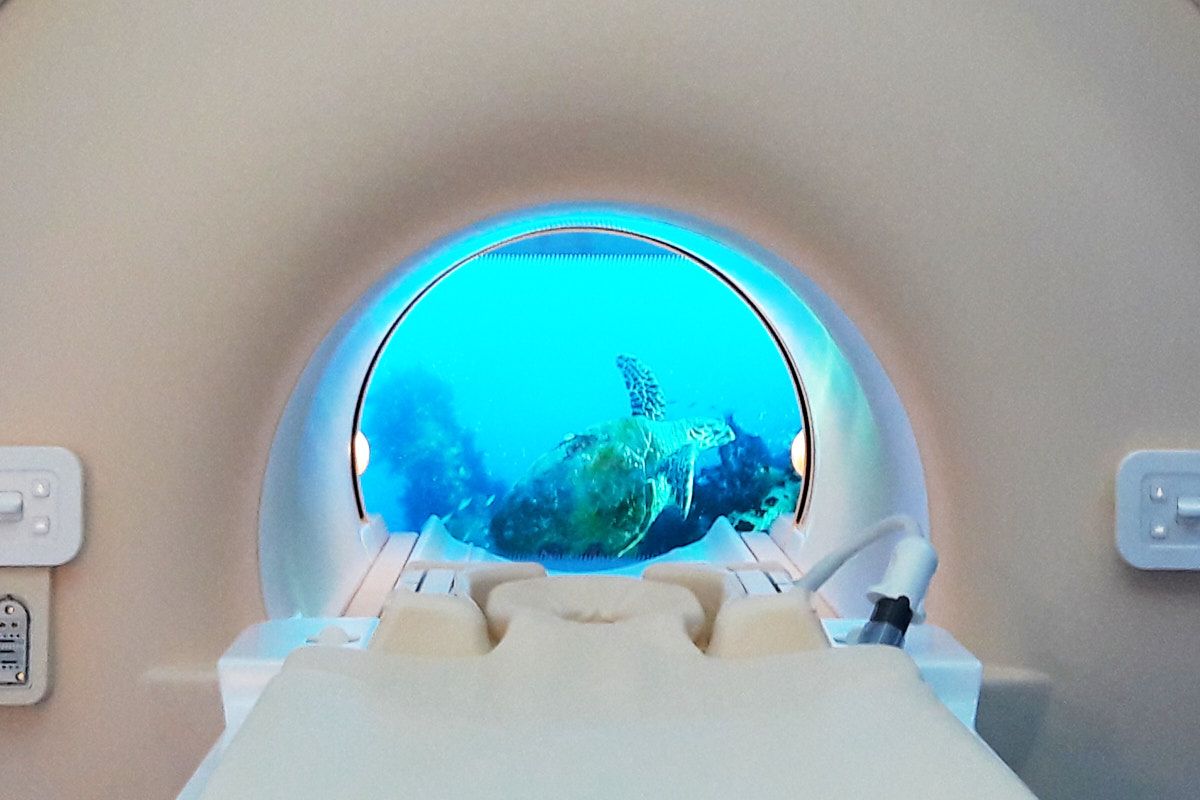Wir bieten Ihnen eine innovative und einzigartige Lösung für dieses Dilemma. Mit einem virtuellen Dachfenster und dem neuesten Entertainmentsystem nehmen wir Ihnen die Angst vor der Enge des Raumes wobei die Röhre bereits einen komfortablen Durchmesser von 70cm aufweist. Während der Untersuchung wird Ihnen jederzeit der Fortschritt der Untersuchung in Echtzeit angezeigt. Außerdem können Sie eines von vielen Unterhaltungsprogrammen auswählen, das während der Untersuchung für Sie eingespielt werden soll.